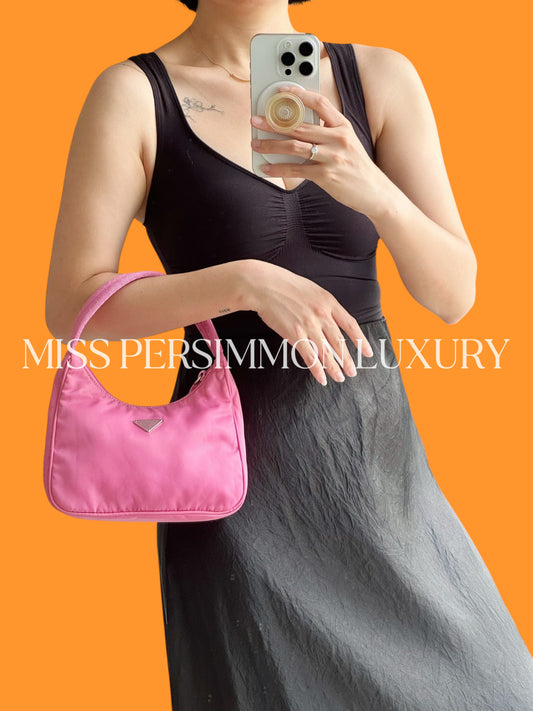 Prada Vintage Nylon Hobo Pink Shoulder Bag