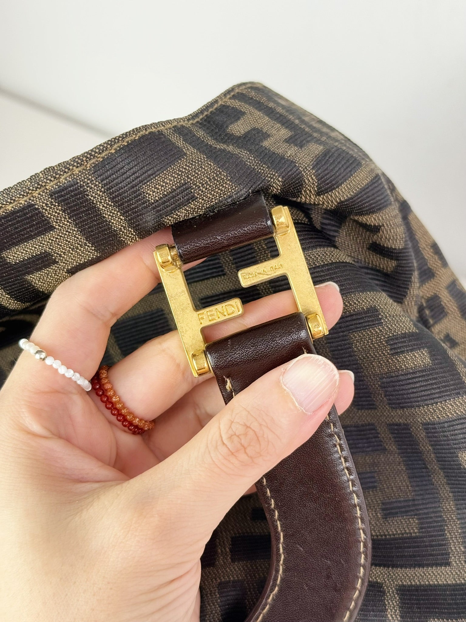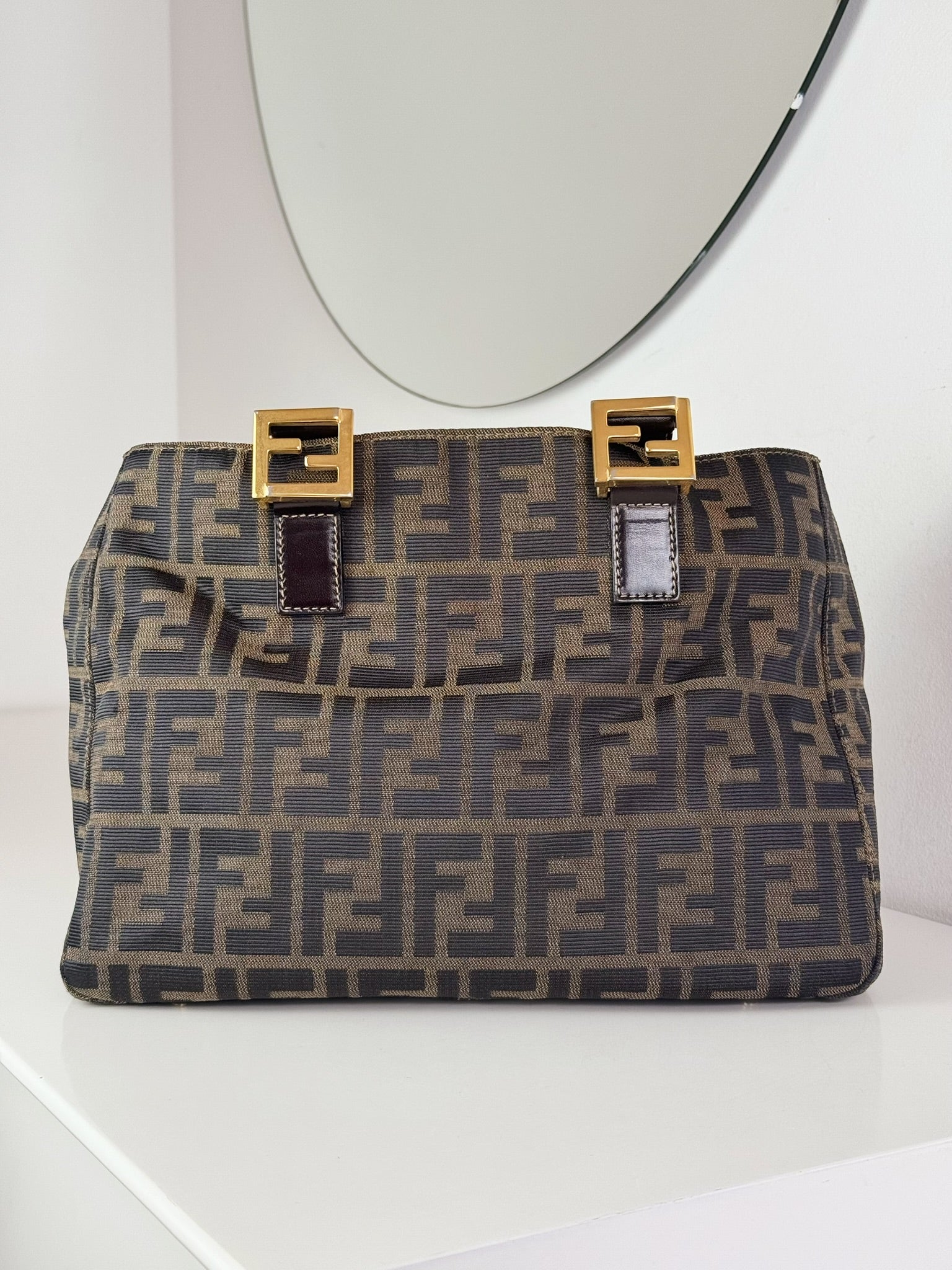Fendi Vintage Zucca Gold Top Handle Tote Bag